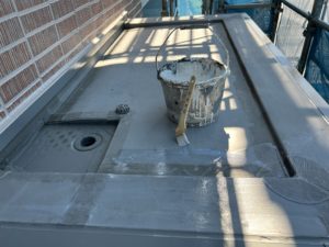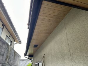 クラック、隙間、庇の付け根の部分をコーキングを打設しました。