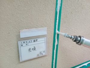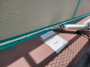 プライマー乾燥後、コーキング材を充填し、ヘラで押えて表面をきれいに仕上げます。
