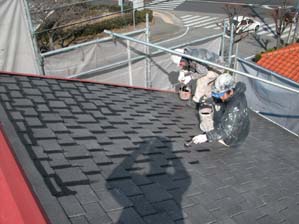 屋根軒先を塗るときは、落下の危険があるので、注意しなければいけません。
