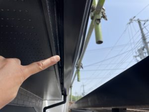 雹で軒樋が破損したので新品交換の段取りもさせていただきました。