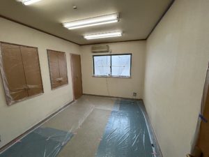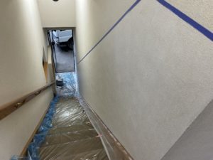 養生→クロス用シーラー下塗り→クロス用塗料中塗り→クロス用塗料上塗り