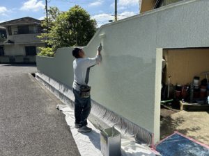 姫路市内で外構塀の塗装、塗替え工事を施工させていただいております。