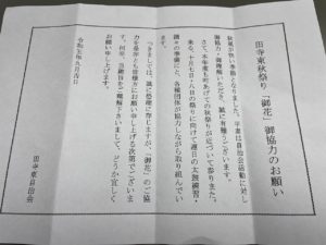 もうすぐ秋祭りの季節です。
