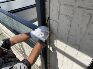 先日、バルコニ手摺まわりのコーキングを施工させていただきました。