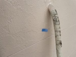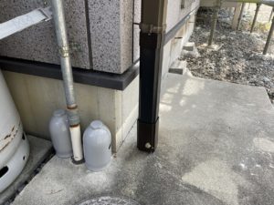カビ取り剤を吹き付けるとカビの塊と茶色の液体が出てきました。