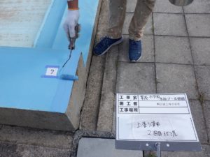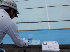 養生→清掃→プライマー下塗り→ライン用塗料2回塗り