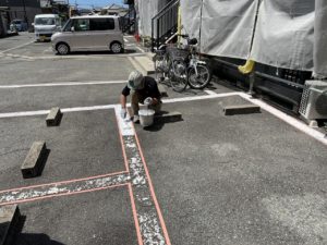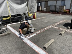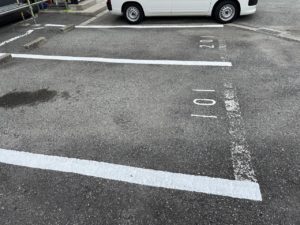 先日、駐車場のラインと番号の塗装、塗替え工事を施工させていただきました。