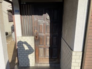 戸建て住宅の木製玄関扉の塗装、塗替え工事を施工させていただきました。