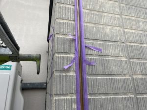 旧コーキング撤去→紙テープ養生→プライマー塗り→コーキング打設