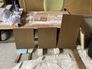 先日、姫路市内建具店にてTV台と収納台を塗装させていただきました。