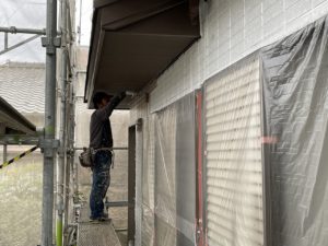 現在、加古川市内戸建て住宅の塗装、塗替え工事を施工させていただいております。
