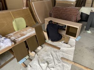 先日、姫路市内建具店にてTV台と収納台を塗装させていただきました。