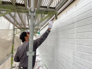 シーラー下塗り→中塗り→上塗りの工程で施工しております。