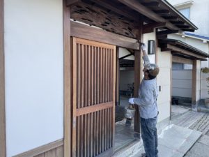 先日、姫路市内にて門扉木部の塗装工事を施工させていただきました。