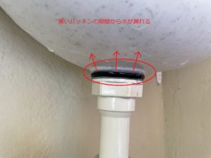手洗いの立水栓とボール下のゴムパッキンキワから水漏れが発生していました。