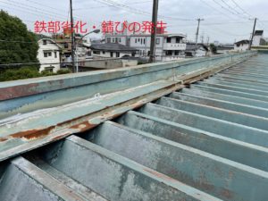 経年劣化で折板鉄部に錆が発生していました。