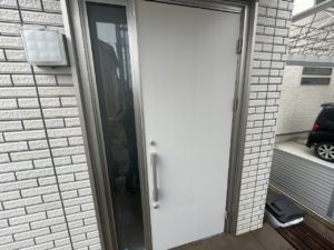 先日、加古川市内戸建て住宅の玄関扉塗装、塗替え工事を施工させていただきました。