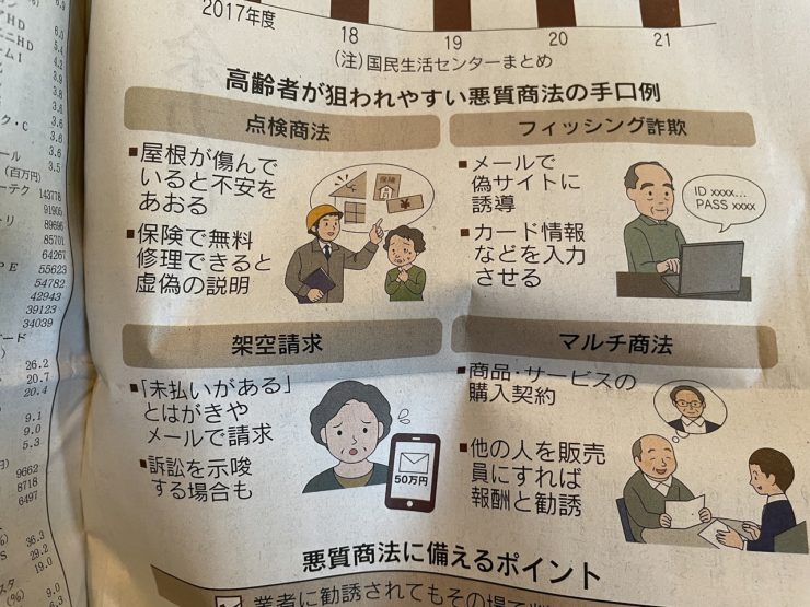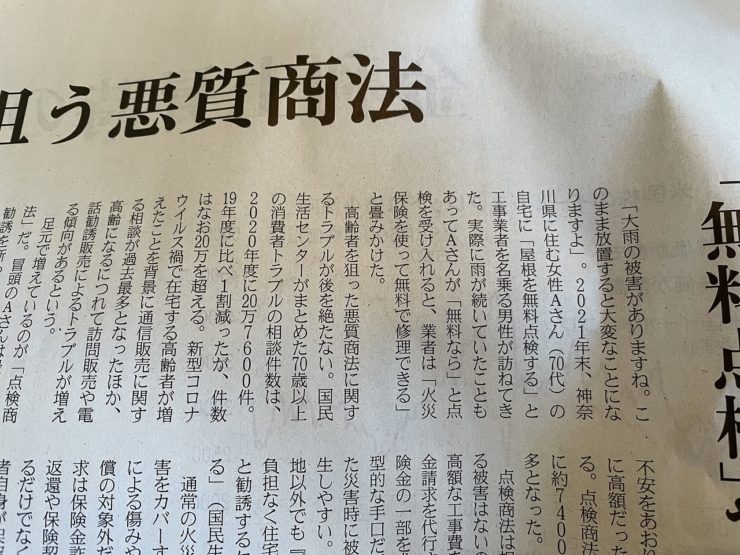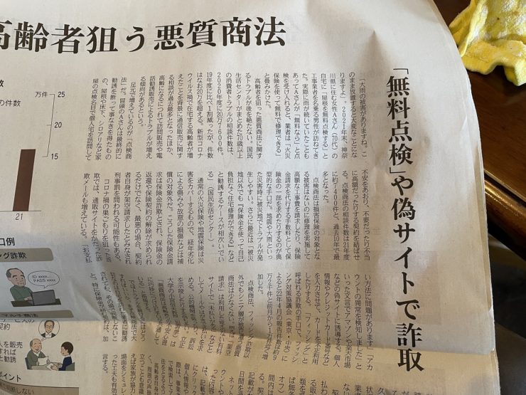 無料点検商法や補助金商法も注意が必要です。