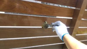 先日、姫路市内戸建て住宅塀木部の塗装工事を施工させていただきました。