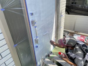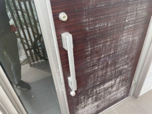 玄関扉の塗装、塗替え、シート張り工事は朝日塗工へお任せください。