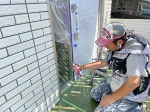 養生→ペーパー処理→プライマー下塗り→フッソ樹脂塗料2回塗り