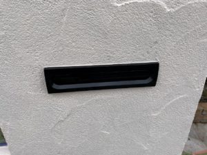 門壁のジョリパット、サイン、ポスト部分の塗装を施工しました。