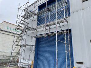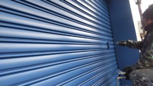 先日、たつの市内工場入口電動シャッターの塗装、塗替え、防水工事を施工させていただきました。
