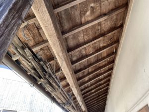 外壁のしっくい、天井と外壁木部まわりが経年劣化していました。