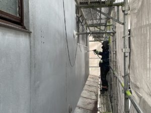 先日、着工物件の外壁の高圧洗浄作業を施工させていただきました。