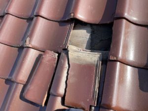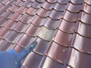 屋根の瓦全体が経年劣化でひび割れやズレが発生していました。