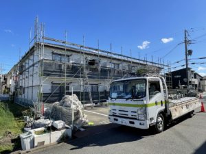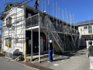 先日、加古川市内アパートの仮設足場を解体させていただきました。