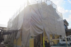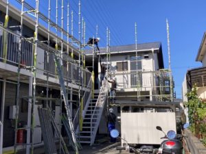 オーナー様の許可をいただいてから足場を解体させていただいております。