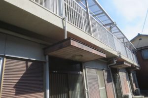 先日、姫路市内アパートの雨戸鉄部、玄関上庇木部の塗装見積もりにお伺いしました。