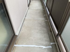 先日、マンションベランダ床のひび割れ補修を施工させていただきました。
