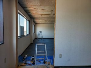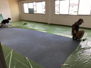 特殊なプライマーを下塗りし、下地を固めてからパテを打設しました。