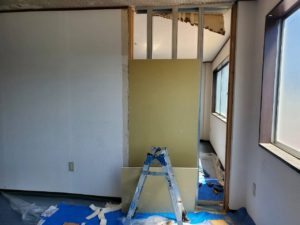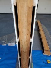 水切りとサイディング間の隙間で雨水を受けて、駆体に浸水していました。