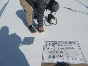遮熱型シート防水機械固定工法で施工いたしました。
