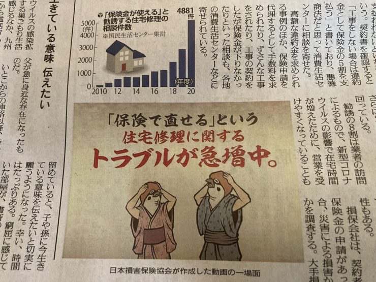 「保険で工事が安くなる」「塗替え工事の補助金がある」「足場代無料」
