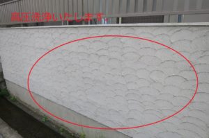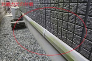北面にカビ、塀に汚れが発生していました。