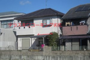 社内検査時、瓦の重なり部に少し塗料が入り込んでいたので、