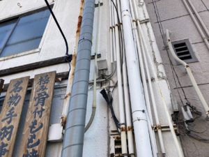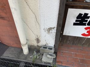 先日、飲食店店舗外壁補修工事の見積もりに行ってきました。