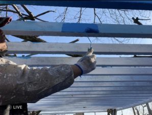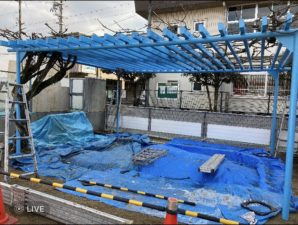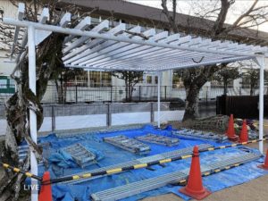 姫路市内こども園様の藤棚鉄部の塗装、塗替え工事を施工させていただきました。
