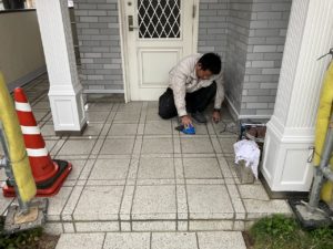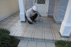 先日、姫路市内戸建て住宅玄関タイル床の滑り止め塗装を施工させていただきました。