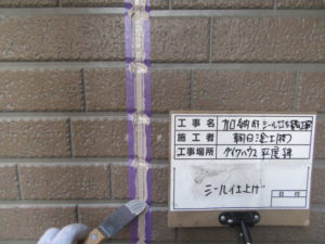 旧コーキング撤去→プライマー下塗り→シーリング打設→仕上げ