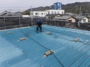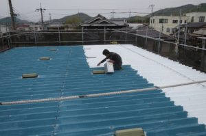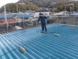 先日、姫路市内アパートの折板鉄部屋根の塗装作業をさせていただきました。