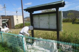 先日、看板業者からの発注で姫路市内の見野古墳群の案内板の塗装、
